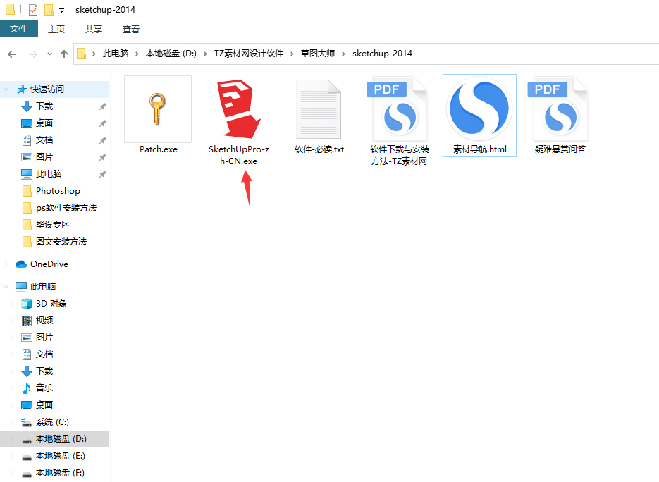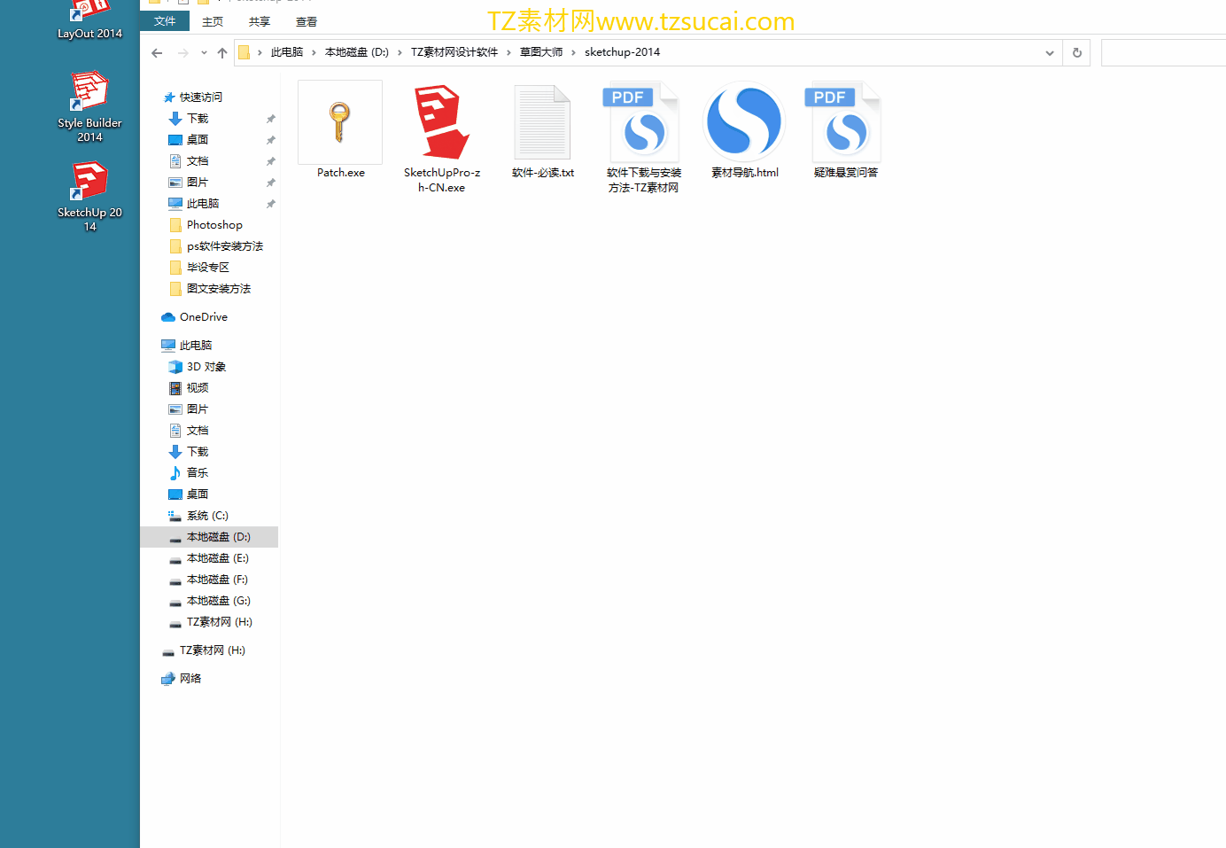 这时打开了资源管理器,找到 Sketchup 2014 安装所在的文件夹,比如: