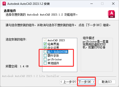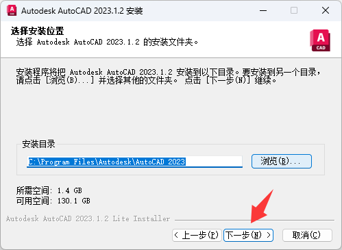 解压压缩包文件,双击运行程序AutoCAD_2023.1.2_x64_Lite.exe