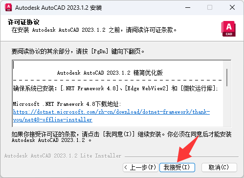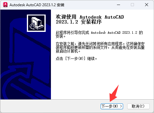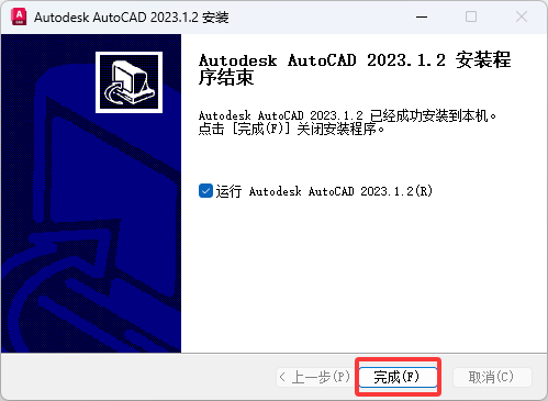 勾选 运行Autodesk AutoCAD2023