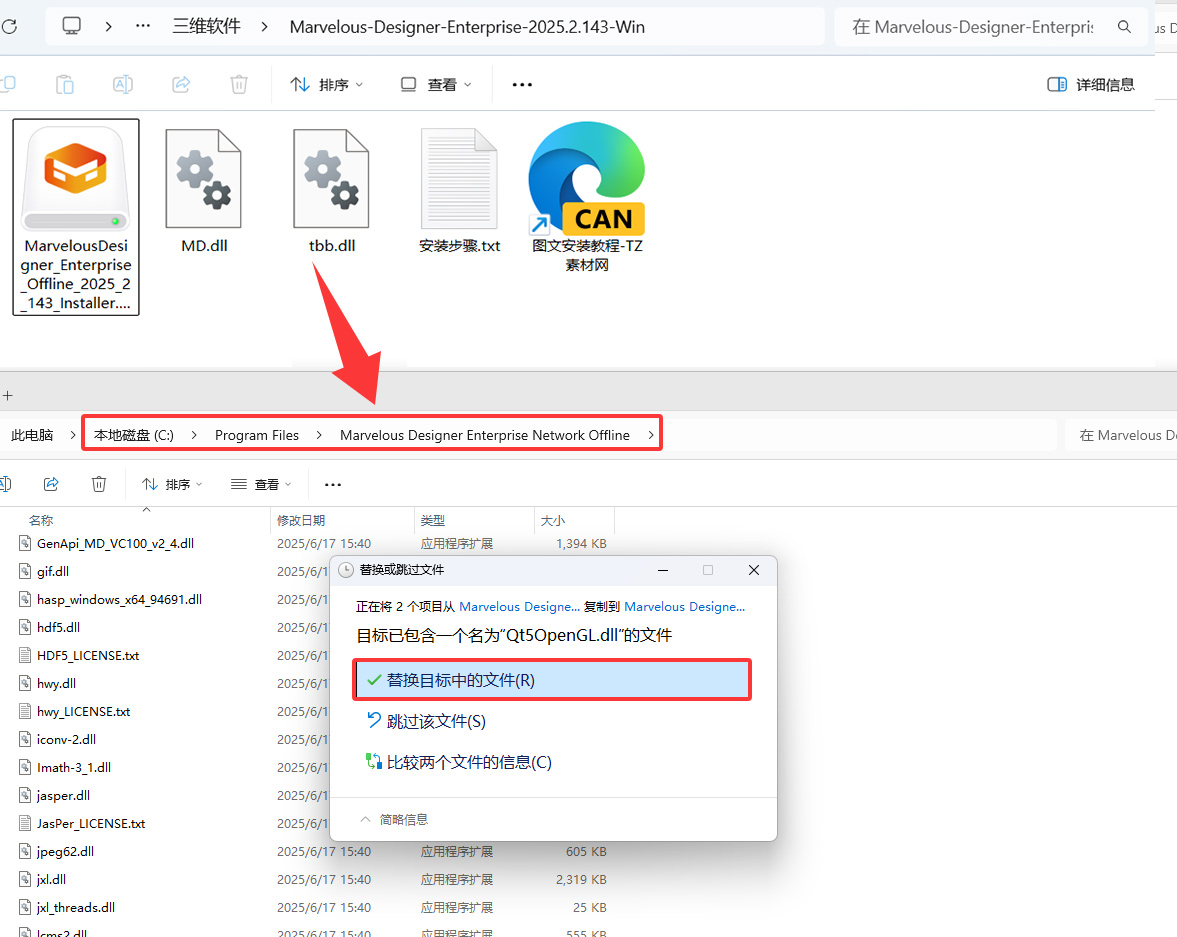 拷贝MD.dll和tbb.dll到安装目录下,替换